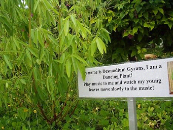 跳舞草學(xué)名為“Desmodium Gyrans”。這種植物最奇異的特點(diǎn)就是葉片會(huì )隨溫度變化或音樂(lè )伴奏而上下舞動(dòng),因此得名“跳舞草”。當跳舞草受到陽(yáng)光直射時(shí)或是處于較溫暖的環(huán)境下,它們就會(huì )快速地舞動(dòng)自己的葉子。當音樂(lè )響起時(shí),跳舞草也會(huì )做出一些反應。在跳舞草每一片葉子的根部,都有一個(gè)相當于鉸鏈裝置的結構,葉子可以圍繞它沿著(zhù)橢圓形路徑旋轉。