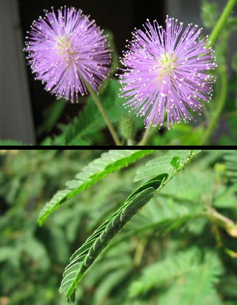 含羞草學(xué)名為“Mimosa pudica”。圖中這種繁星點(diǎn)點(diǎn)狀的粉紅色小花就是含羞草的花,圖下部則是它的葉子。當人們用手觸摸它時(shí),甚至只是向它吹口氣,它的葉子就會(huì )收縮起來(lái),似乎受到了驚嚇而做自我保護。當含羞草受到外界干擾時(shí),它們的莖部會(huì )釋放出一種化學(xué)物質(zhì)。這種化學(xué)物質(zhì)會(huì )迫使水份流出細胞,使得葉子看起來(lái)像是萎縮了一樣。對于含羞草為什么會(huì )進(jìn)化出這種特性,科學(xué)家們至今未能找到明確答案,他們認為這可能是用于威嚇捕食者。