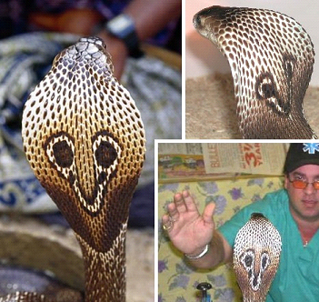 它們的“頭罩”上長(cháng)著(zhù)眼狀斑紋,雖然從遠處看蛇的腦袋顯得更大