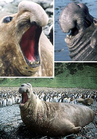 雄海象通過(guò)鼓鼻子,讓自己看起來(lái)更有威脅性 |