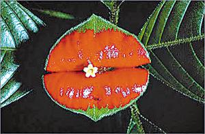 熱唇草 6.熱唇草 熱唇草一般生長(cháng)在特立尼達和多巴哥以及哥斯達黎加的熱帶叢林中,有意思的是,這種奇異植物的花朵一般會(huì )盛開(kāi)長(cháng)在兩片“嘴唇”之間。一場(chǎng)叢林急雨過(guò)后,鮮潤的“嘴唇”中間含著(zhù)一朵小巧的花,使它更顯妖嬈。