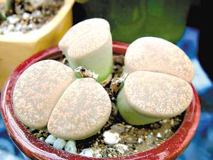 生石花 7.偽裝的“生石花” 生石花生活在非洲南部的沙漠地區,它的顏色、形狀與卵石惟妙惟肖,葉肥厚多汁,裹成卵石狀,能貯存水分。生石花開(kāi)金黃色的花,非常好看,而且一株只開(kāi)一朵花,不過(guò)只開(kāi)一天就凋謝。 生石花生成這個(gè)樣子,當然是為了魚(yú)目混珠,蒙騙動(dòng)物,避免被吃掉。生石花喜歡與沙礫亂石為伴,要是離開(kāi)了這種環(huán)境就很難活命。 8.笑樹(shù) 非洲東部盧旺達的首都基加利,有個(gè)芝密達蘭哈德植物園,園里有一種會(huì )發(fā)出“哈!哈!”笑聲的樹(shù)。笑樹(shù)是一種小喬木,能長(cháng)到七八米高,樹(shù)干深褐色,葉子橢圓形。每個(gè)枝杈間長(cháng)有一個(gè)皮果,形狀像鈴鐺。皮果內生有許多小滾珠似的皮蕊,能在果皮里滾動(dòng)。皮果的殼上長(cháng)了許多斑點(diǎn)般的小孔,每當微風(fēng)吹來(lái),皮蕊在里面滾動(dòng),就會(huì )發(fā)出“哈!哈!”的聲響。 9.百歲葉 在非洲西南部靠近海岸的狹長(cháng)沙漠帶中,遠遠望去,零零落落地生長(cháng)著(zhù)一些像大樹(shù)樁一樣的東西,它叫百歲葉。 百歲葉的長(cháng)相十分古怪,像樹(shù)樁的東西是它的莖,高不到30厘米,然而很粗,直徑約有60厘米左右。百歲葉雖然只有兩片葉子,但和它的生命共存亡,能生長(cháng)100多年,所以叫它百歲葉。這是植物王國中最長(cháng)壽的葉子了。