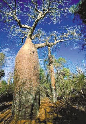 紡錘樹(shù) 10.紡錘樹(shù) 紡錘樹(shù)生長(cháng)在南美洲的巴西高原上,遠遠望去很像一個(gè)個(gè)巨型的紡錘插在地里。紡錘樹(shù)有30米高,兩頭尖細,中間膨大,最粗的地方直徑可達5米,里面貯水約有2噸。雨季時(shí),它吸收大量水分,貯存起來(lái),到干季時(shí)來(lái)供應自己的消耗。 紡錘樹(shù)和旅人蕉一樣,可以為荒漠上的旅行者提供水源。人們只要在樹(shù)上挖個(gè)小孔,清新解渴的“飲料”便可源源不斷地流出來(lái),解決人們在茫茫沙海中缺水之急。 (綜合報道) |